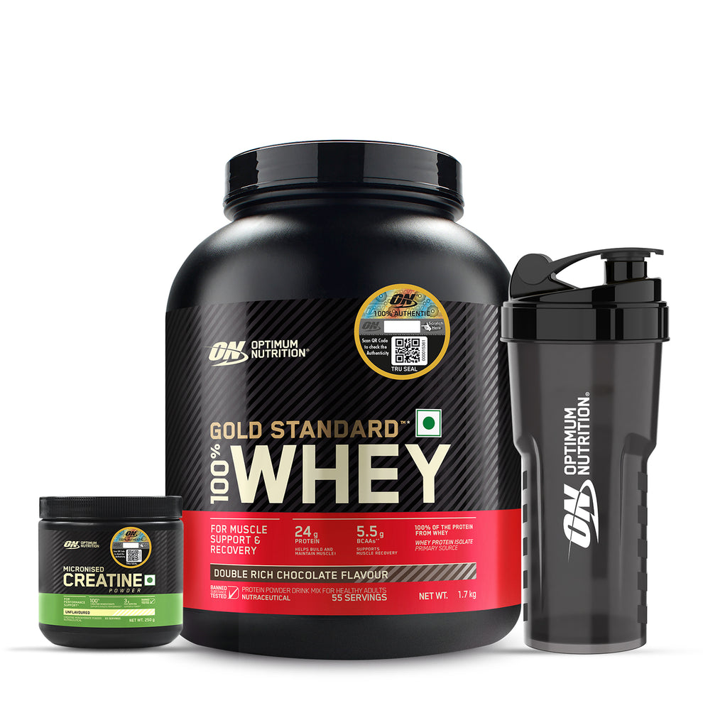 Gold Standard 100% Whey | 1.7 kg | Double Rich Chocolate + Creatine 250 g + FREE Optimum Nutrition Shaker