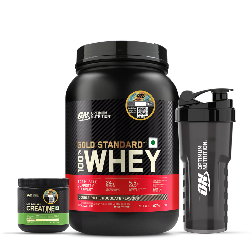 Gold Standard 100% Whey | 2 lbs | Double Rich Chocolate + Creatine 250 g + FREE Optimum Nutrition Shaker